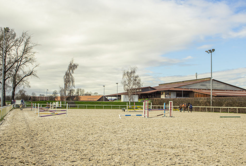75’000m² (dont 22’000m² en sable fibré), 30 obstacles naturels, un passage d’eau, une piste de sable de 1640m pour galoper.